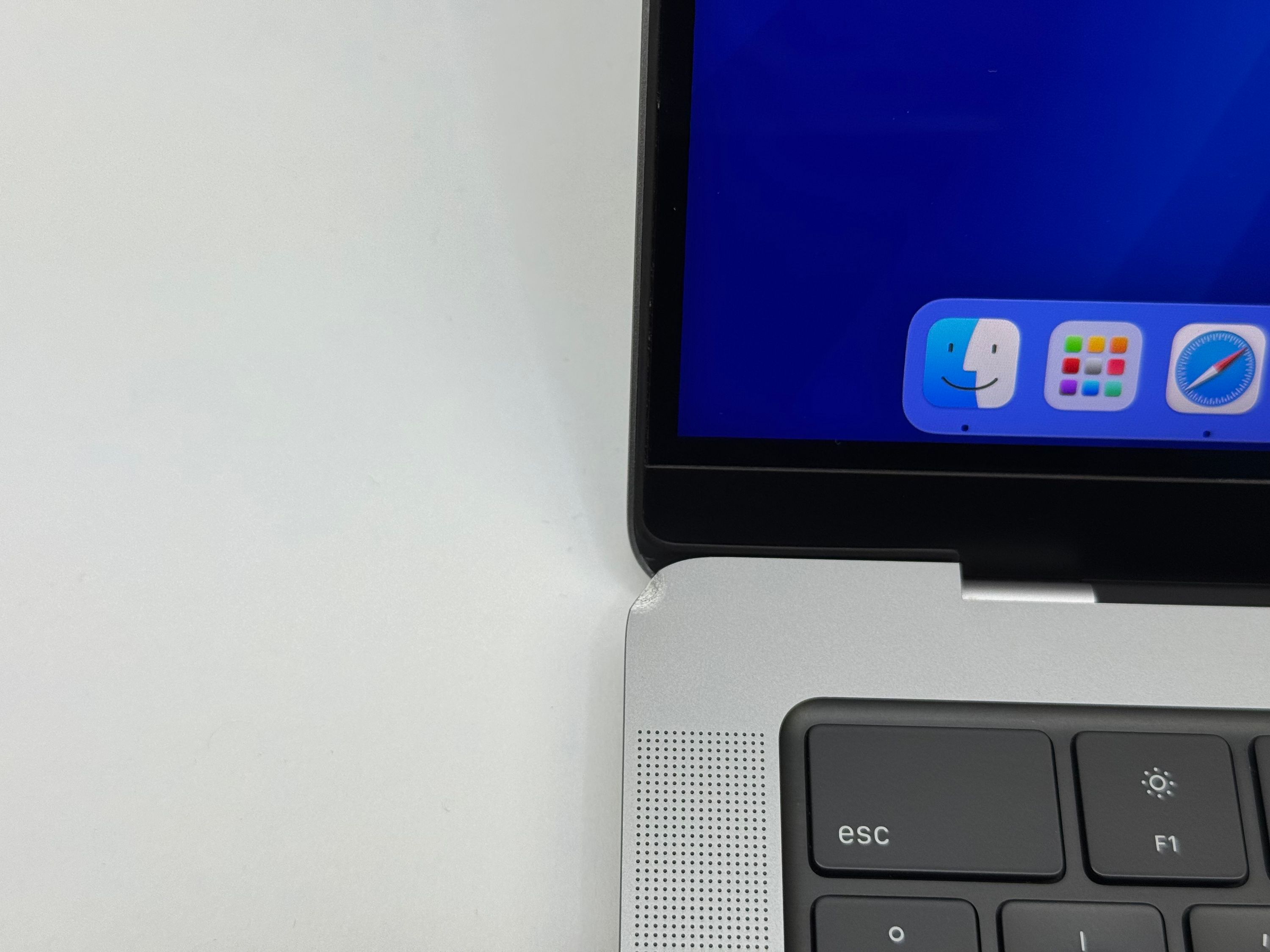An den Seiten gibt es mehrere Kratzer. An der linken hinteren Gehäuseecke gibt es eine Delle.
