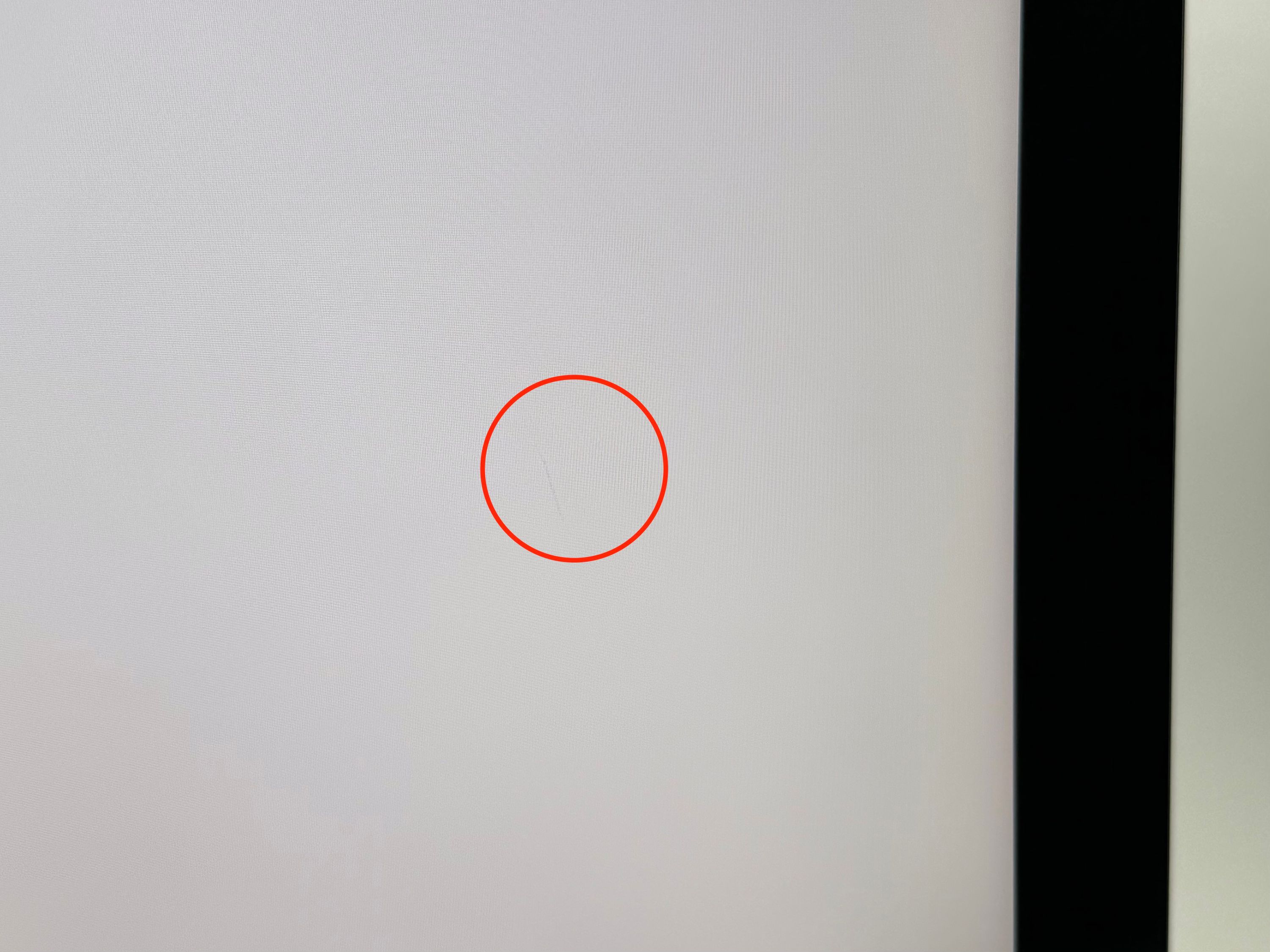 Am Gehäuse gibt es mehrere leichte Kratzer. Am Standfuß gibt es mehrere kleinere Kratzer.